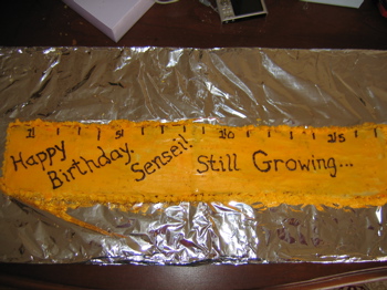 A ruler cake I made for our pastor friend, Makio Sensei…who discovered that he had grown a centimeter the past year: