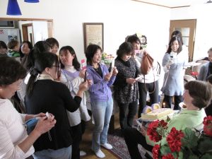 A swan cake for one of our Asian Access leaders, Kawasaki Sensei. Several years ago he dressed up as a swan for a skit night that we had at a retreat, so we had to help him remember it at a recent birthday when he was visiting: