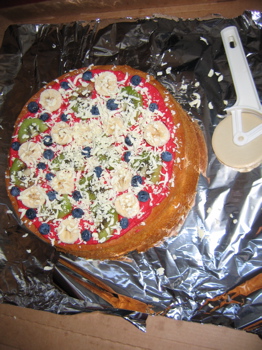 For Eric’s last birthday, we had a “backwards birthday party.” In addition to everyone coming dressed backwards, we had dessert first, and then dinner. Dessert turned out to be a meatloaf cake with mashed potato topping: