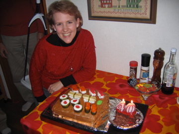 We had an Asian theme 40th birthday party for our friend Wendi. She got a sushi cake!