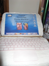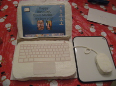 We celebrated Eric’s brother Mark’s birthday while he was visiting us over Thanksgiving when we were back in New Jersey several years ago. Although he uses pcs at work, we think he didn’t mind us making it an Apple computer cake: