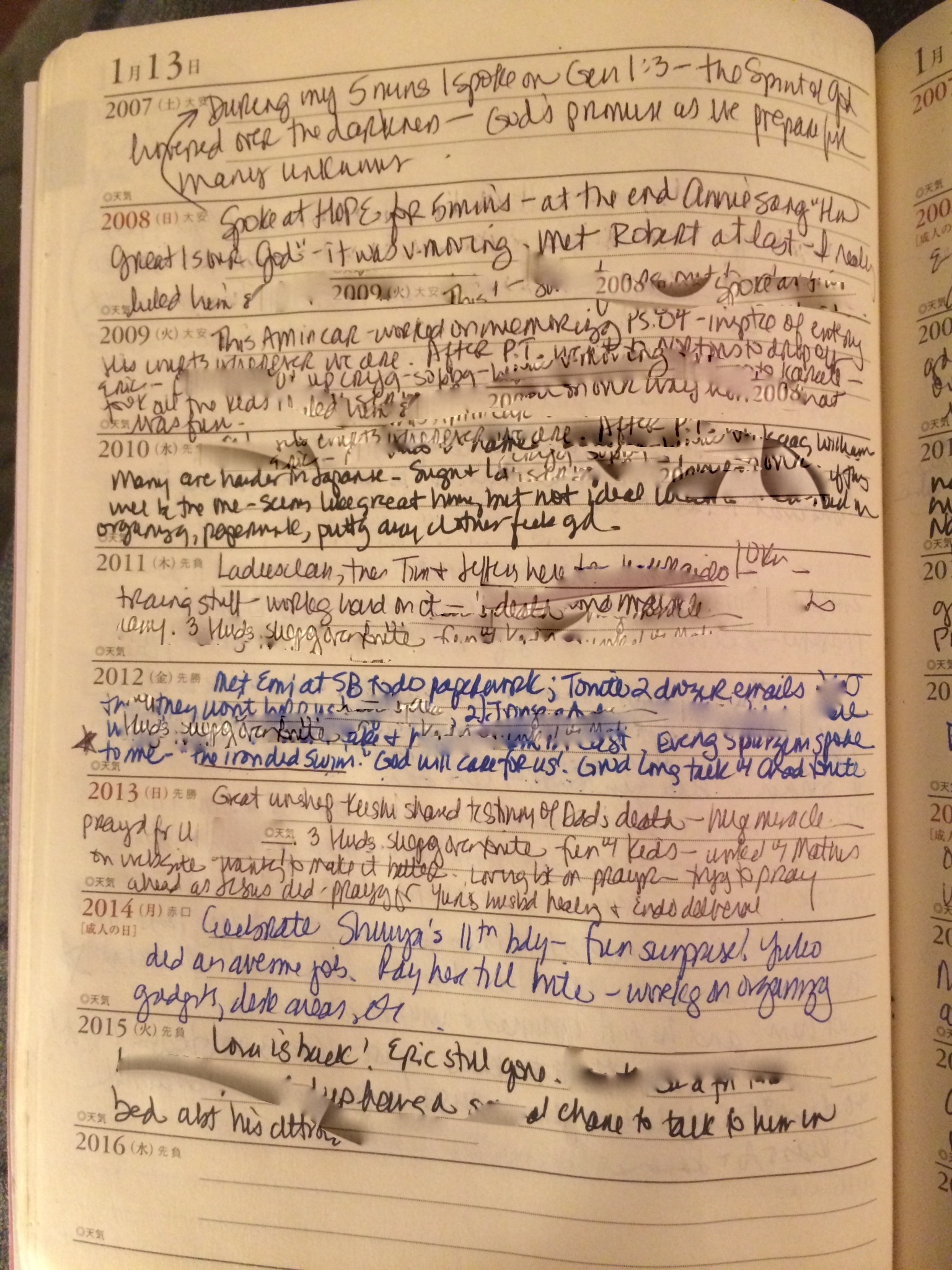 To buy your own ten year journal– you can get them at stationery stores or online in Japan; I found several different versions on Amazon as well. For as little time as it takes to write a few sentences, this ritual and journal can become a gift to yourself – and to your family — as you use it over the years.
