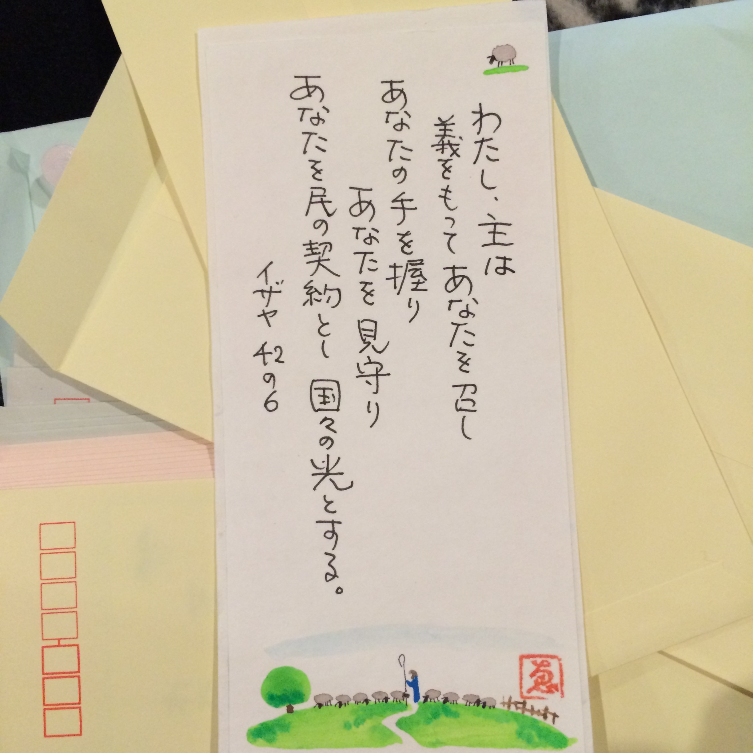 Below is one of the most beautiful photos my iPhone has ever taken. Tomi-san is reading the Bible verse, “I will never forget you! I have written you on the palm of my hands.” Now she nows, for sure, that she is not forgotten.